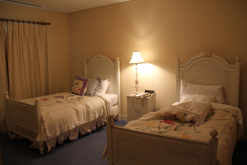 Each cottage is designed as a private, self-contained accommodation, making it ideal for travelers who value space and independence. The interiors are warm and comfortable, featuring separate bedrooms, a living area, and tasteful furnishings that create a relaxed, home-like environment. Large windows allow natural light to fill the rooms while offering views of the surrounding forest.