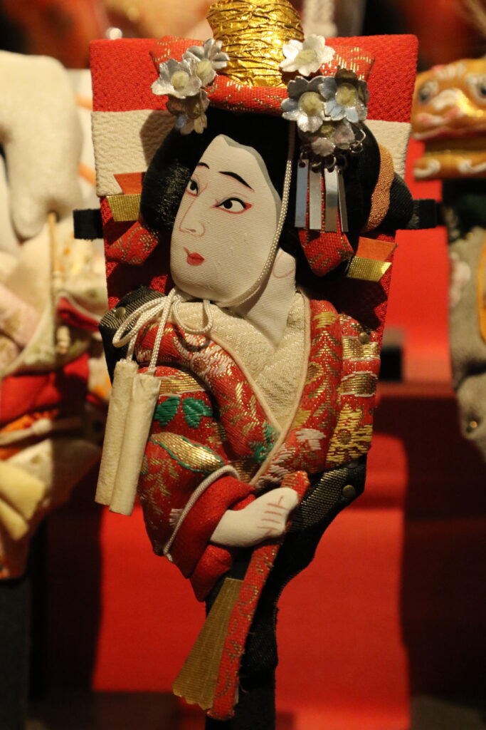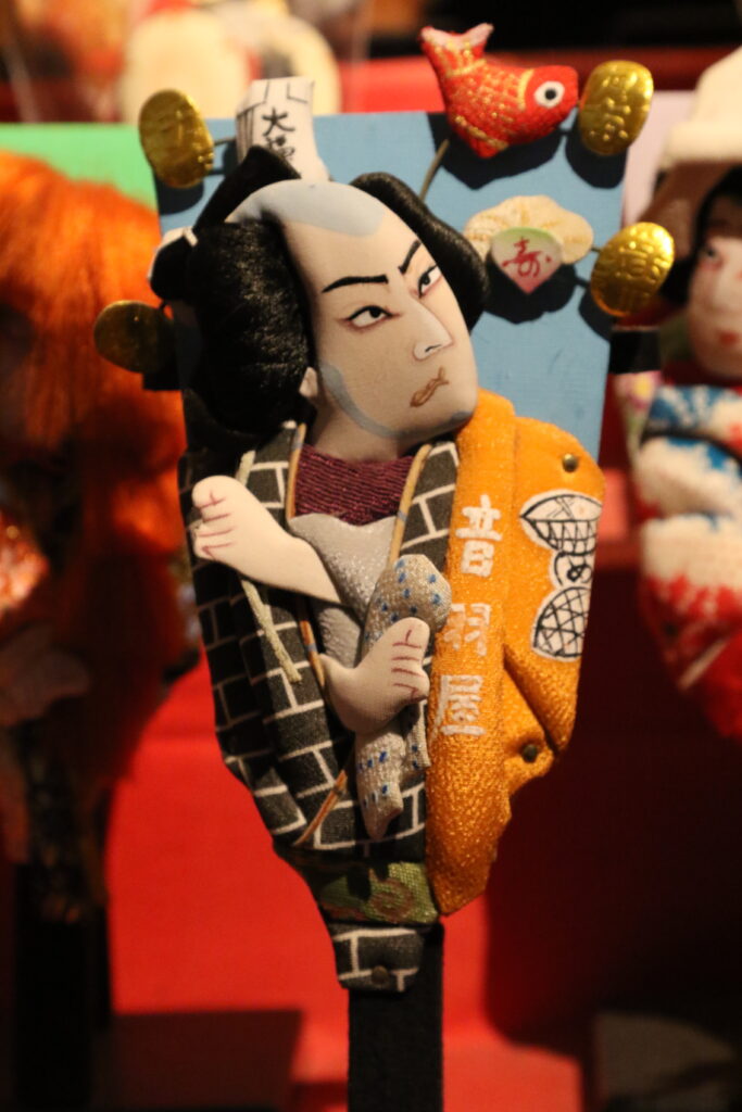 A kabuki-inspired hagoita figure, emphasizing bold facial expression and theatrical costume.