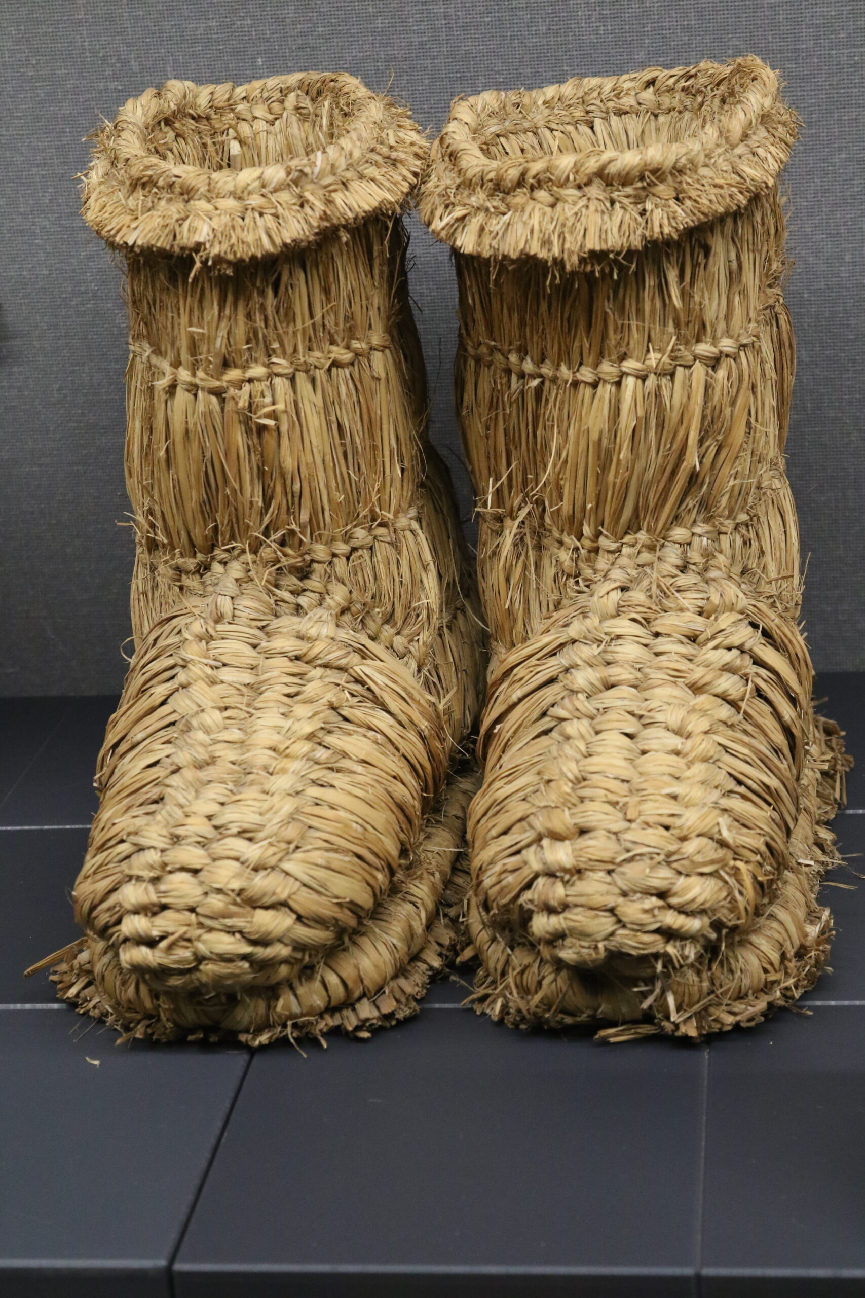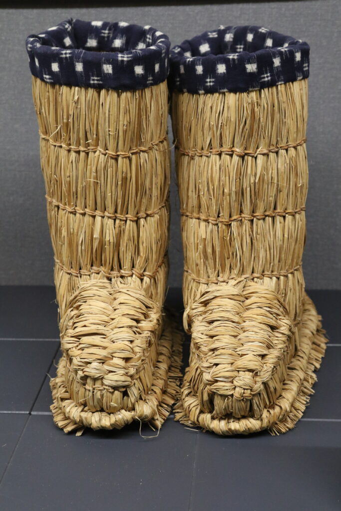 Unlike flat waraji, these boots extended upward, enclosing the foot and sometimes reaching the ankle. They were thicker, denser, and better suited for insulation. While still made from rice straw, their construction reflected a different climate and a different set of challenges.